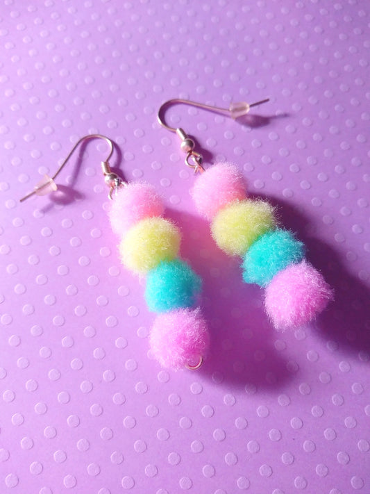 Pastel Kawaii Mini Pom Pom Earrings (925 Silver Hooks)