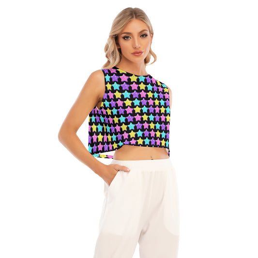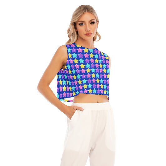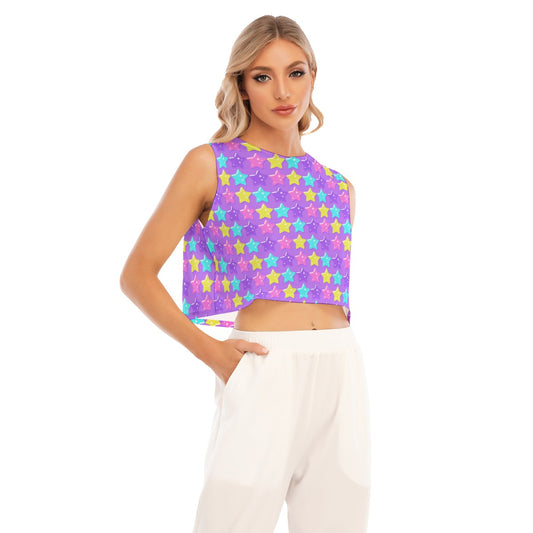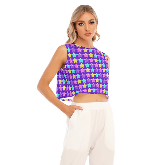 Electric Star Wave Purple Sleeveless Relaxed Fit Crop Top