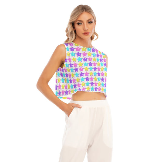 Electric Star Wave Pink Sleeveless Relaxed Fit Crop Top
