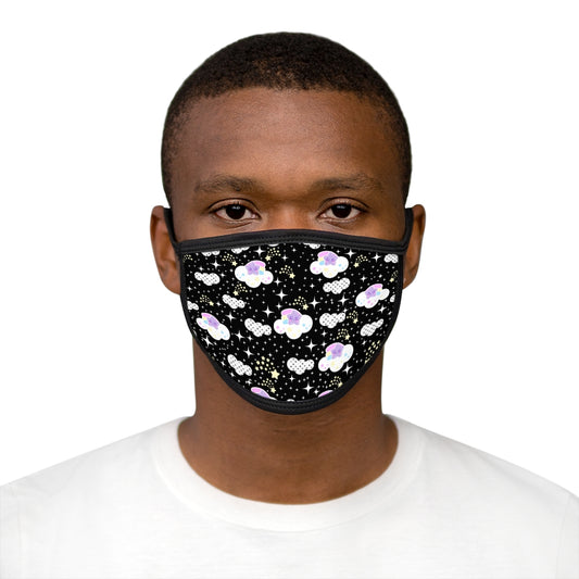Shooting Star Clouds Black Fitted Polyester Face Mask