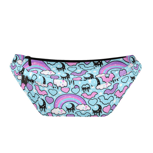 Rainbow Spooky Bats Blue Large Fanny Pack Bag