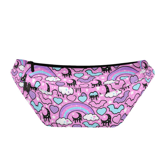 Rainbow Spooky Bats Pink Large Fanny Pack Bag