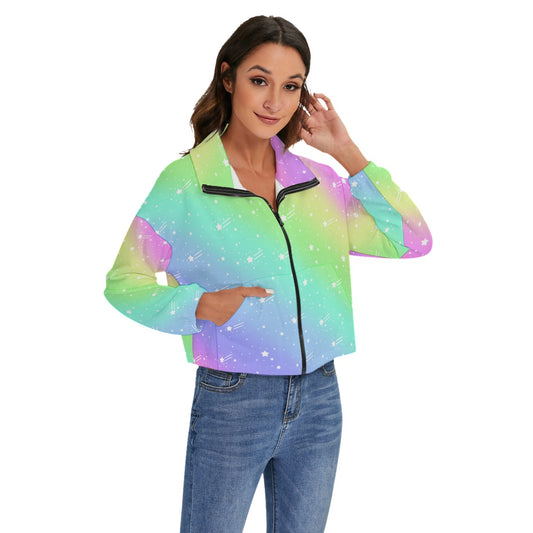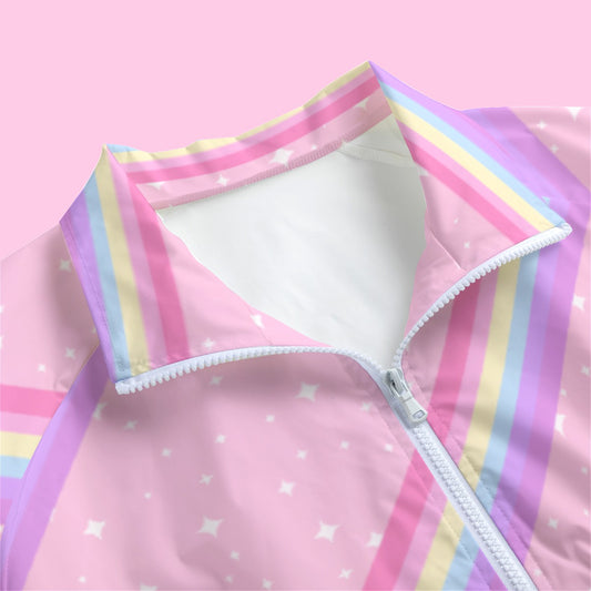 Kawaii Sparkle Cake Rainbow Beam Women's Cutie Flair Windbreaker Jacket With Waist Elastic