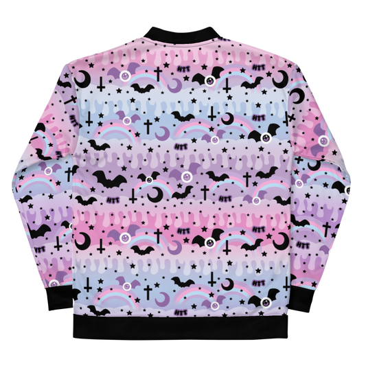 Magical Kawaii Spooky Bats Purple Unisex Bomber Jacket