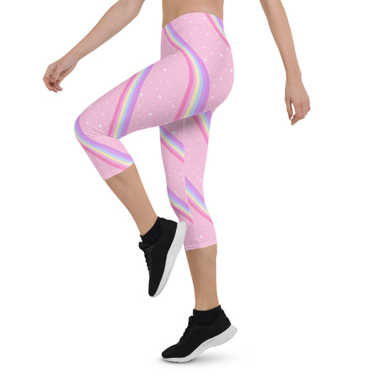 Kawaii Sparkle Cake Rainbow Beam Capri Leggings