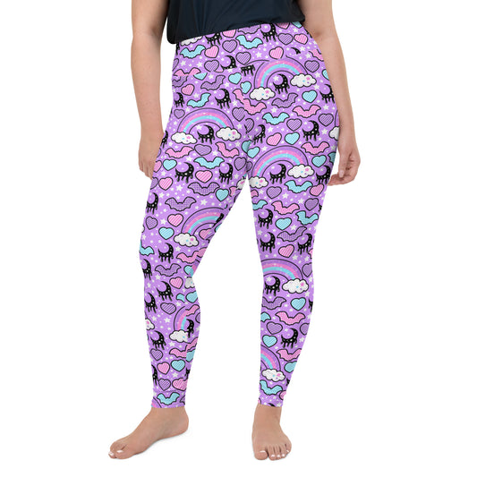 Rainbow Spooky Bats Purple Plus Size Leggings
