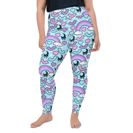 Rainbow Spooky Bats Blue Plus Size Leggings