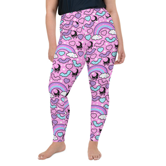 Rainbow Spooky Bats Pink Plus Size Leggings