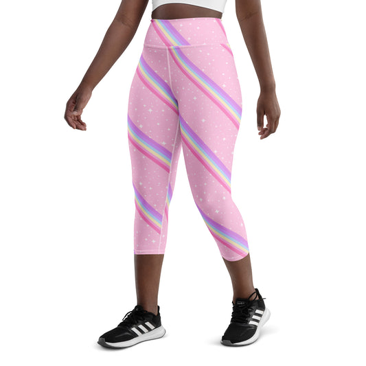 Kawaii Sparkle Cake Rainbow Beam Yoga Capri Leggings