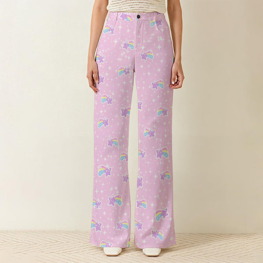 Bubblegum Bunny Shooting Stars Women's Wide Leg Denim Pants