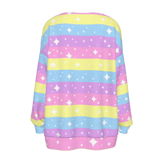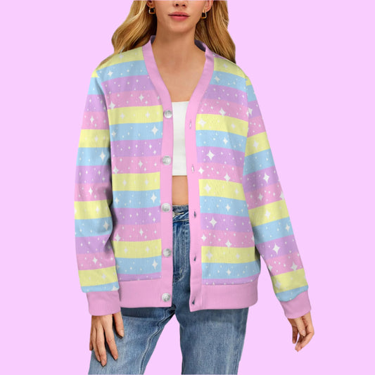 Rainbow Ribbon Women's Ribbed Button Up Cardigan