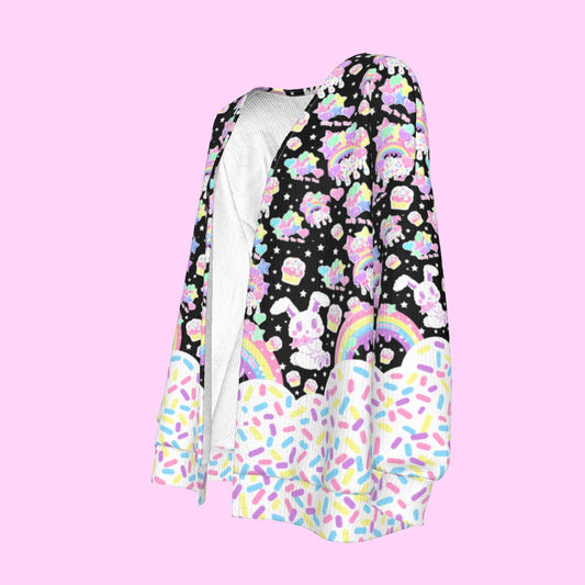Rainbow Sweets Black Open Front Cardigan
