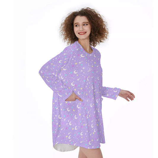 Starry Glitter Purple Long Sleeve Dress With Pockets
