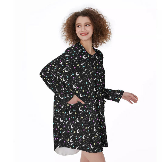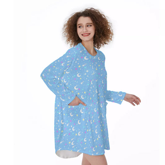 Starry Glitter Blue Long Sleeve Dress With Pockets
