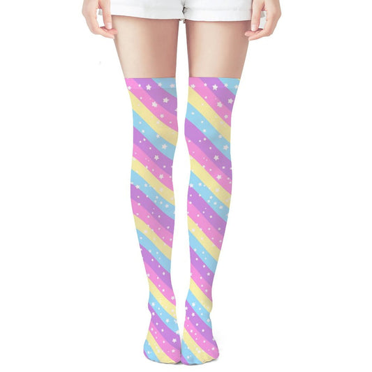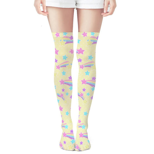 This collection features colorful shooting stars with cute polka dots. This design is perfect for fairy kei fashion looks.