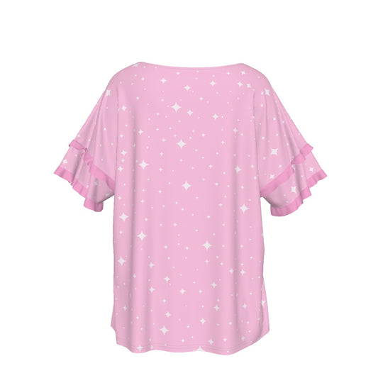 Wishing Bunny Pink Round Neck Raglan Sleeve Ruffle Frill T-Shirt