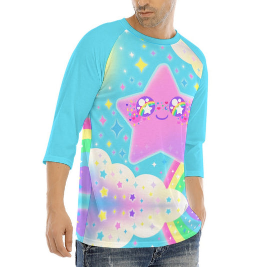 Rainbow Decora Star Unisex Raglan 3/4 Sleeve T-shirt (Blue)