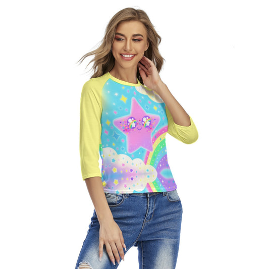Rainbow Decora Star Women's Raglan 3/4 Sleeve T-shirt (Yellow)