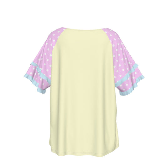 Wishing Bunny Yellow Round Neck Raglan Sleeve Ruffle Frill T-Shirt