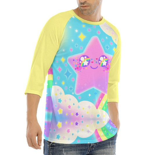 Rainbow Decora Star Unisex Raglan 3/4 Sleeve T-shirt (Yellow)