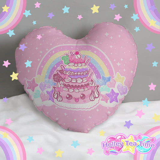 Kawaii Sparkle Cake Heart Shaped Throw Pillow (Double Sided)