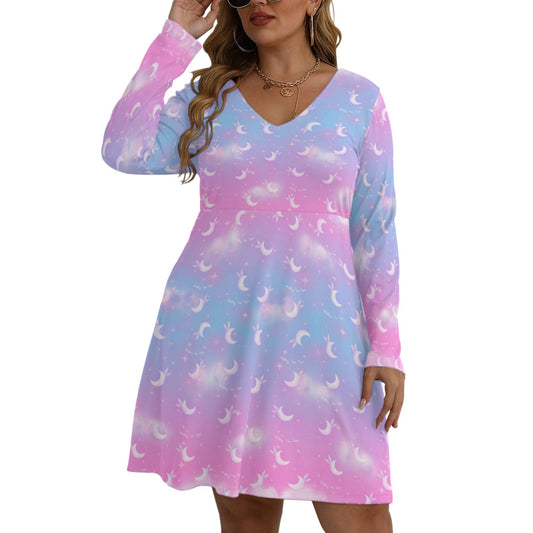 Twinkle Heaven Women's V-Neck Long Sleeve Dress (Plus Size)