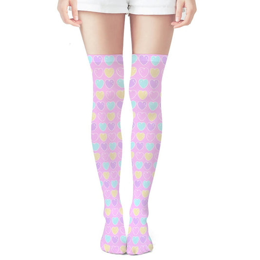 Sweet Love Hearts Over Knee Stocking Socks (Pink)