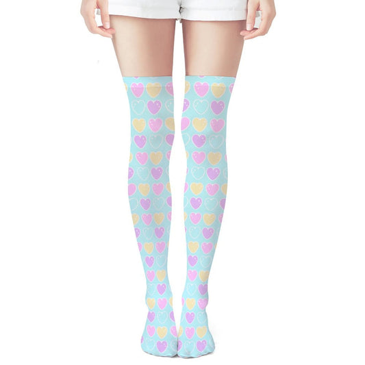 Sweet Love Hearts Over Knee Stocking Socks (Blue)