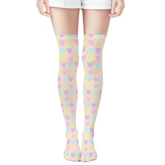 Sweet Love Hearts Over Knee Stocking Socks (Yellow)