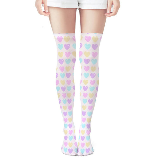 Sweet Love Hearts Over Knee Stocking Socks (White)