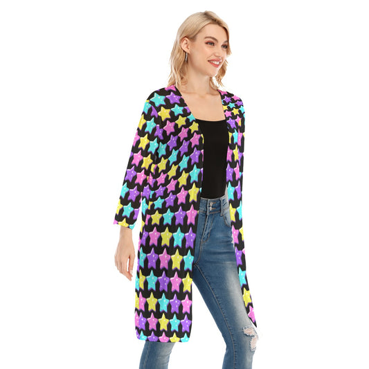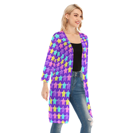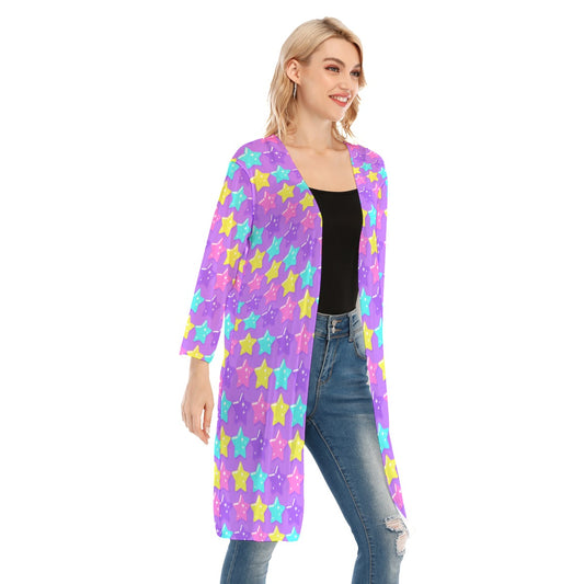 Electric Star Wave Purple V-neck Mesh Cardigan