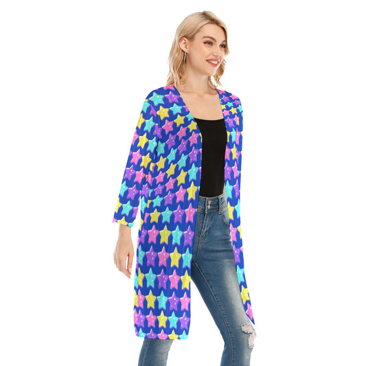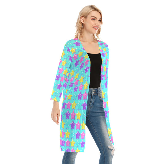 Electric Star Wave Blue V-neck Mesh Cardigan