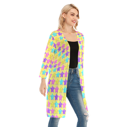 Electric Star Wave Yellow V-neck Mesh Cardigan