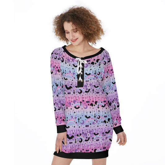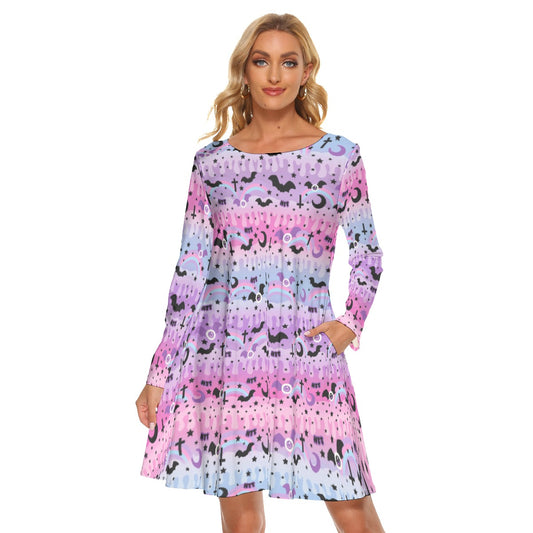 Dripping Sky Women's Long Sleeve Dress With Pockets
