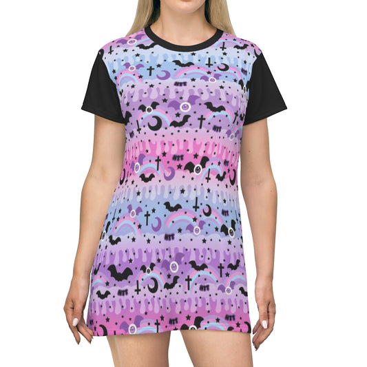Dripping Sky All Over Print T-Shirt Mini Dress