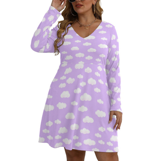 Dreamy Clouds (Lilac) Women's V-Neck Long Sleeve Dress (Plus Size)