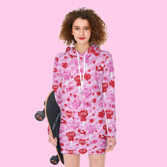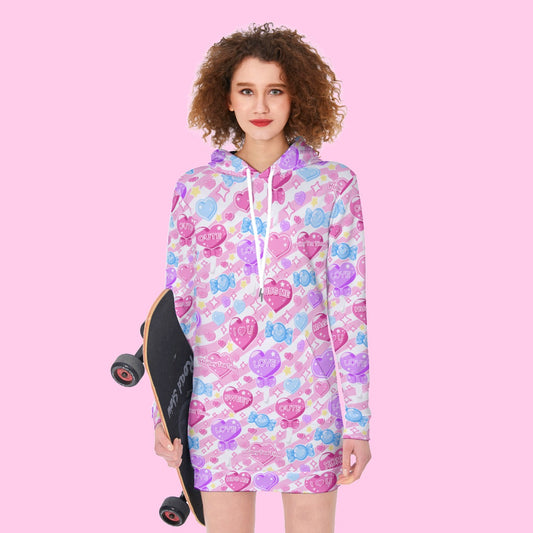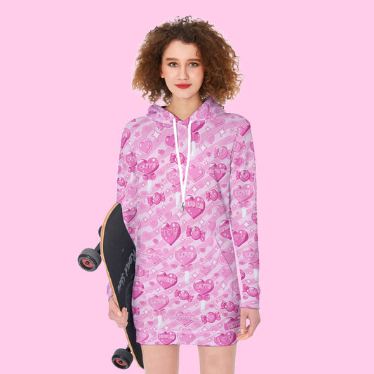 Candy Love Hearts (Pink Cutie) Women's Long Hoodie