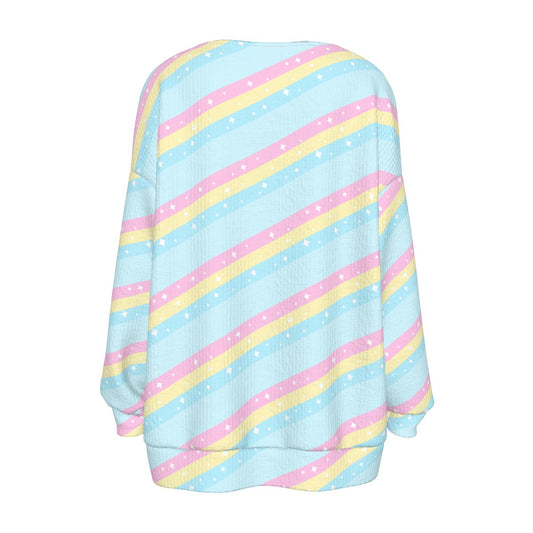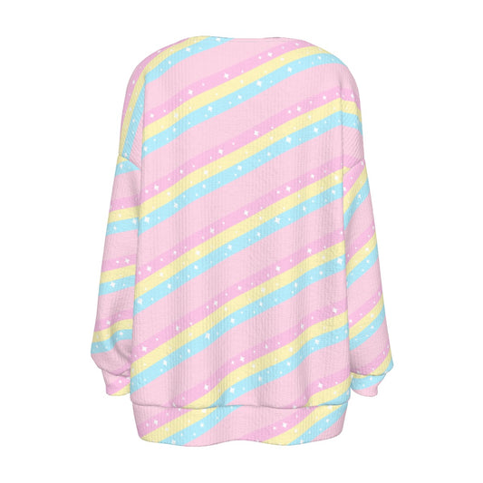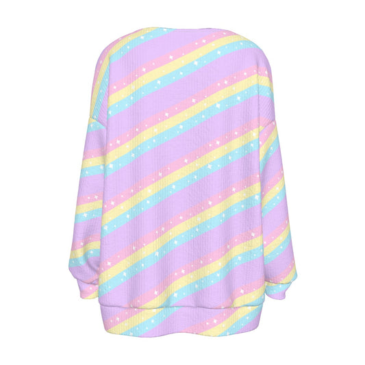Teatime Fantasy Rainbow Women's Ribbed Button Up Cardigan