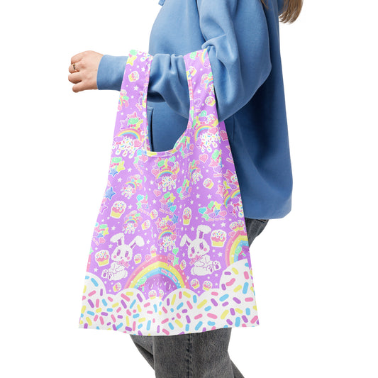 Rainbow Sweets Reusable Shopping Tote Bag (Purple)
