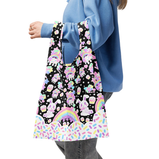 Rainbow Sweets Reusable Shopping Tote Bag (Black)