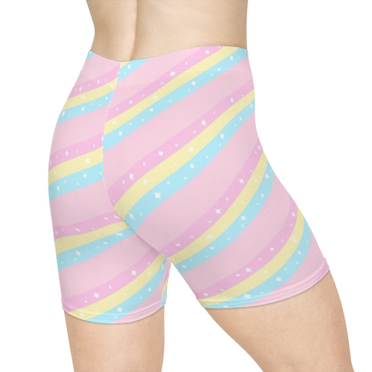 Teatime Fantasy Pink Rainbow Women's Biker Shorts