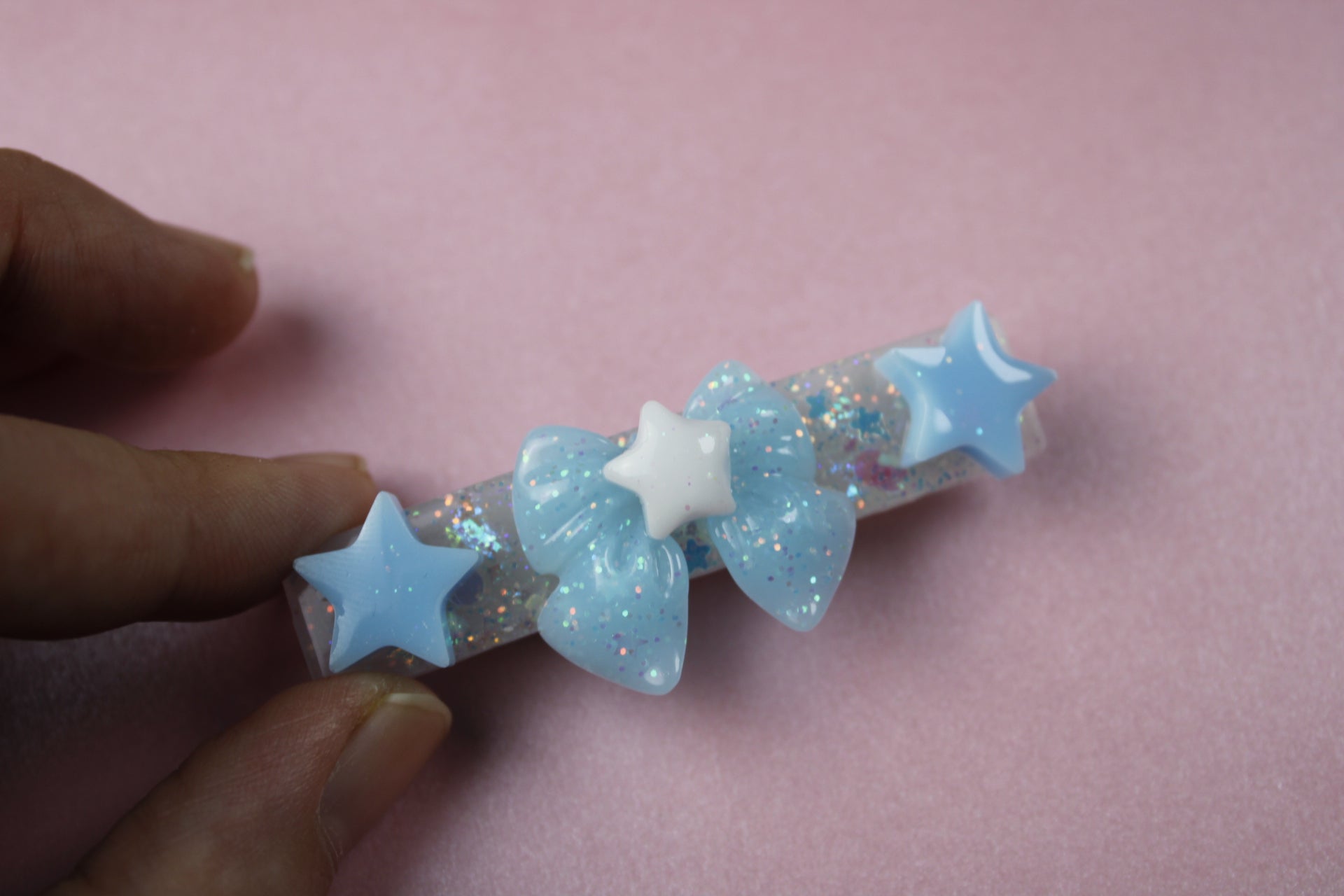 Cute Ribbon Star Sparkly Hair Clip (Blue & White Tenshi Kaiwai)