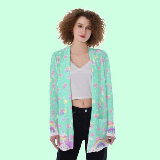 Rainbow Sweets Mint Open Front Lightweight Cardigan With Pockets