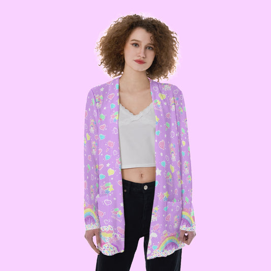 Rainbow Sweets Purple Open Front Lightweight Cardigan With Pockets