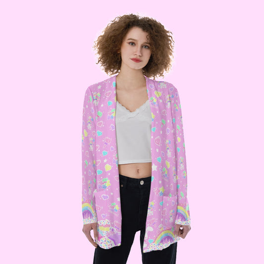 Teatime Fantasy Pink Rainbow Open Front Cardigan