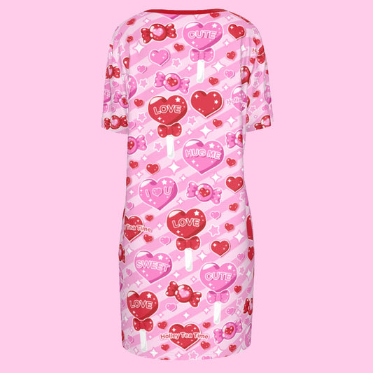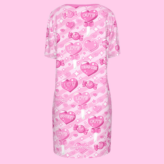 Candy Love Hearts (Pink Cutie) Women's T-shirt Dress