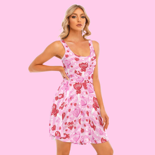 Candy Love Hearts (Pink Cutie) Women's Skater Dress With Pockets