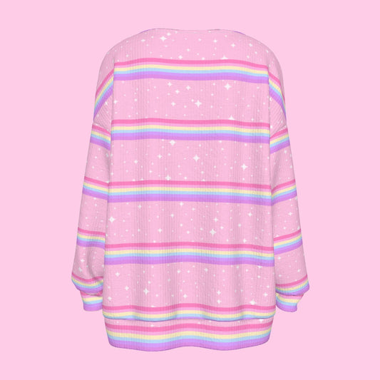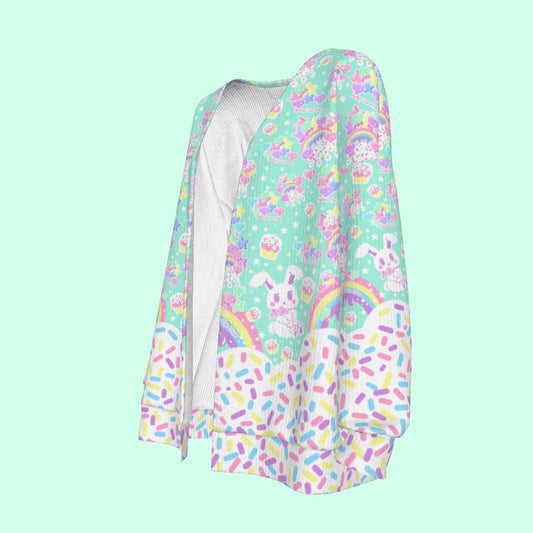 Kawaii Sparkle Cake Rainbow Beam Open Front Cardigan