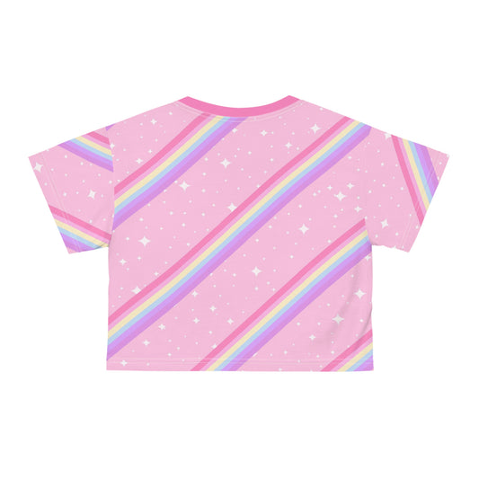 Kawaii Sparkle Cake Rainbow Beam AOP Crop Tee Junior's