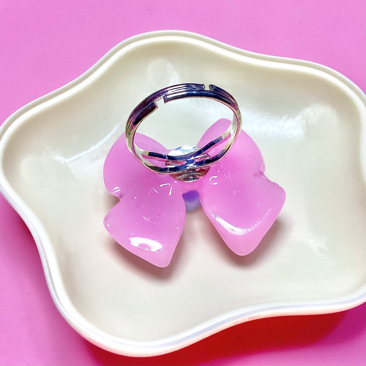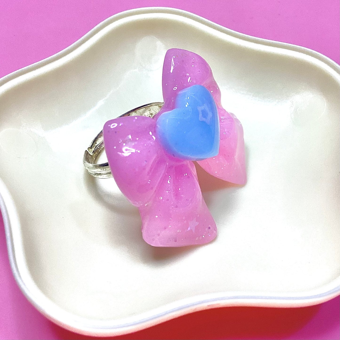 Cute and glittery adjustable resin ring.